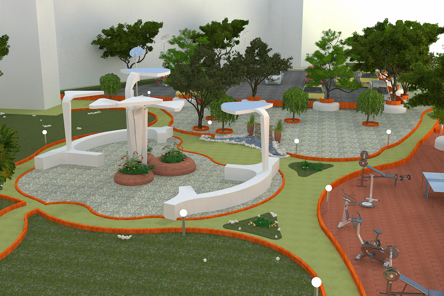 طراحی پلکانی اِلمان در جهت جانمایی فضای سبز در آن به عنوان تعریفی از واژه "بهارستان"