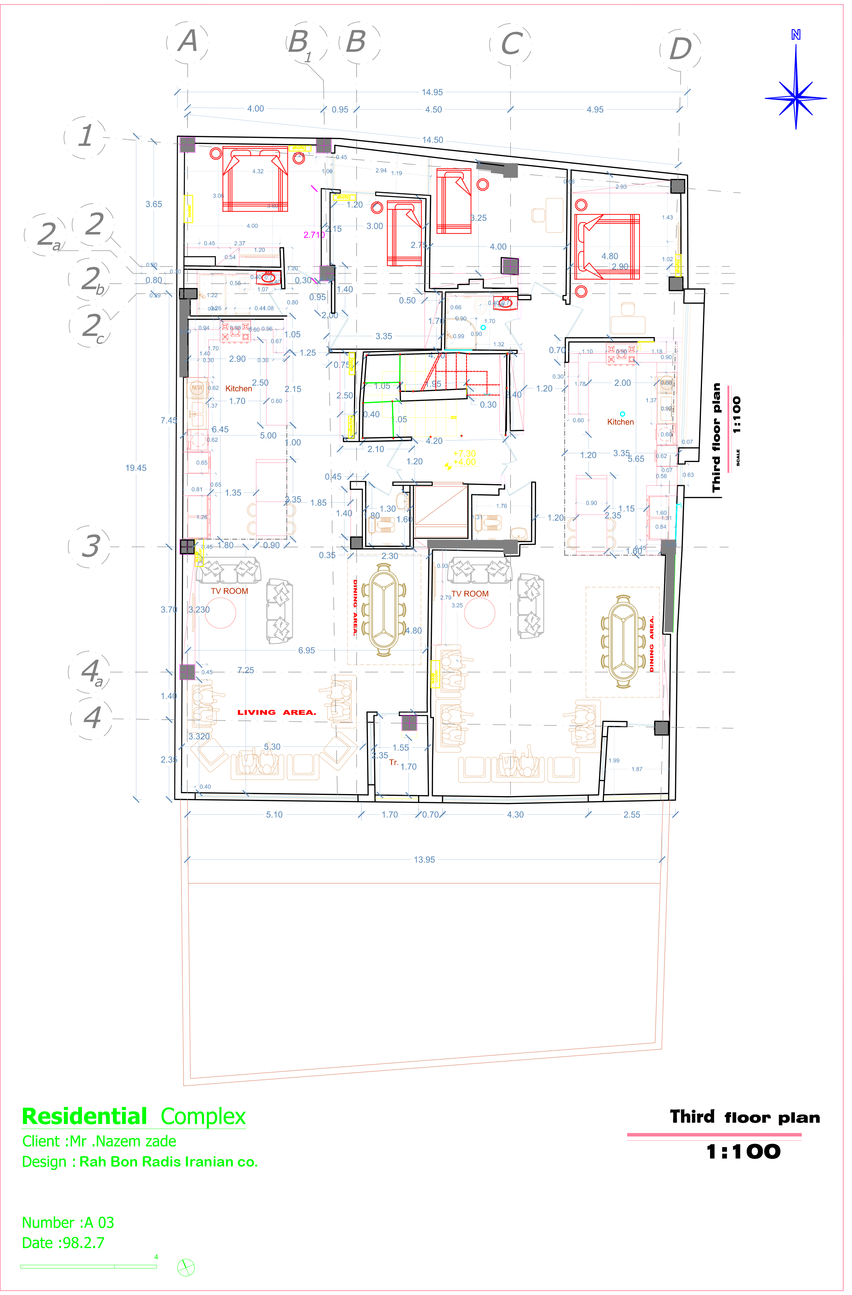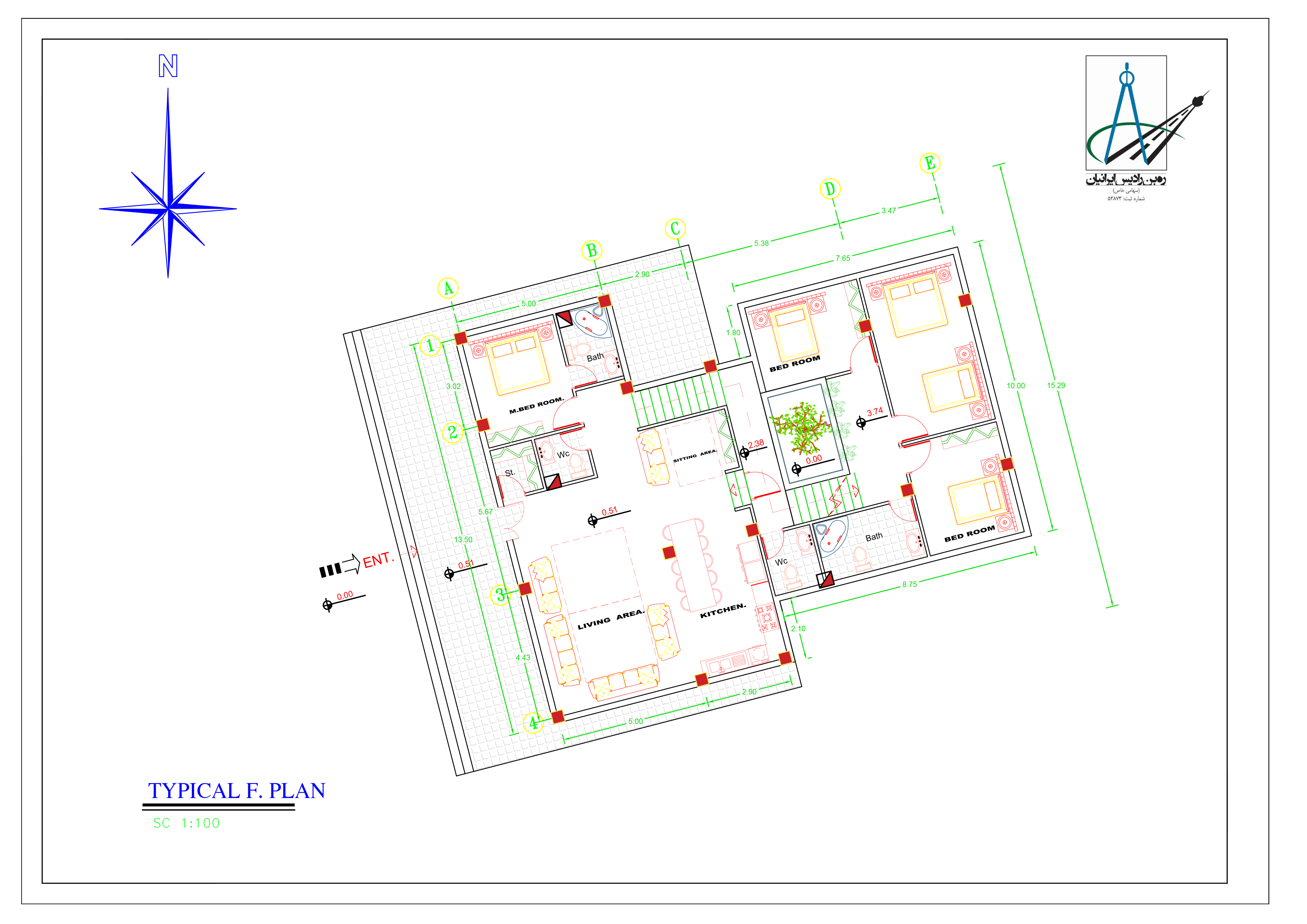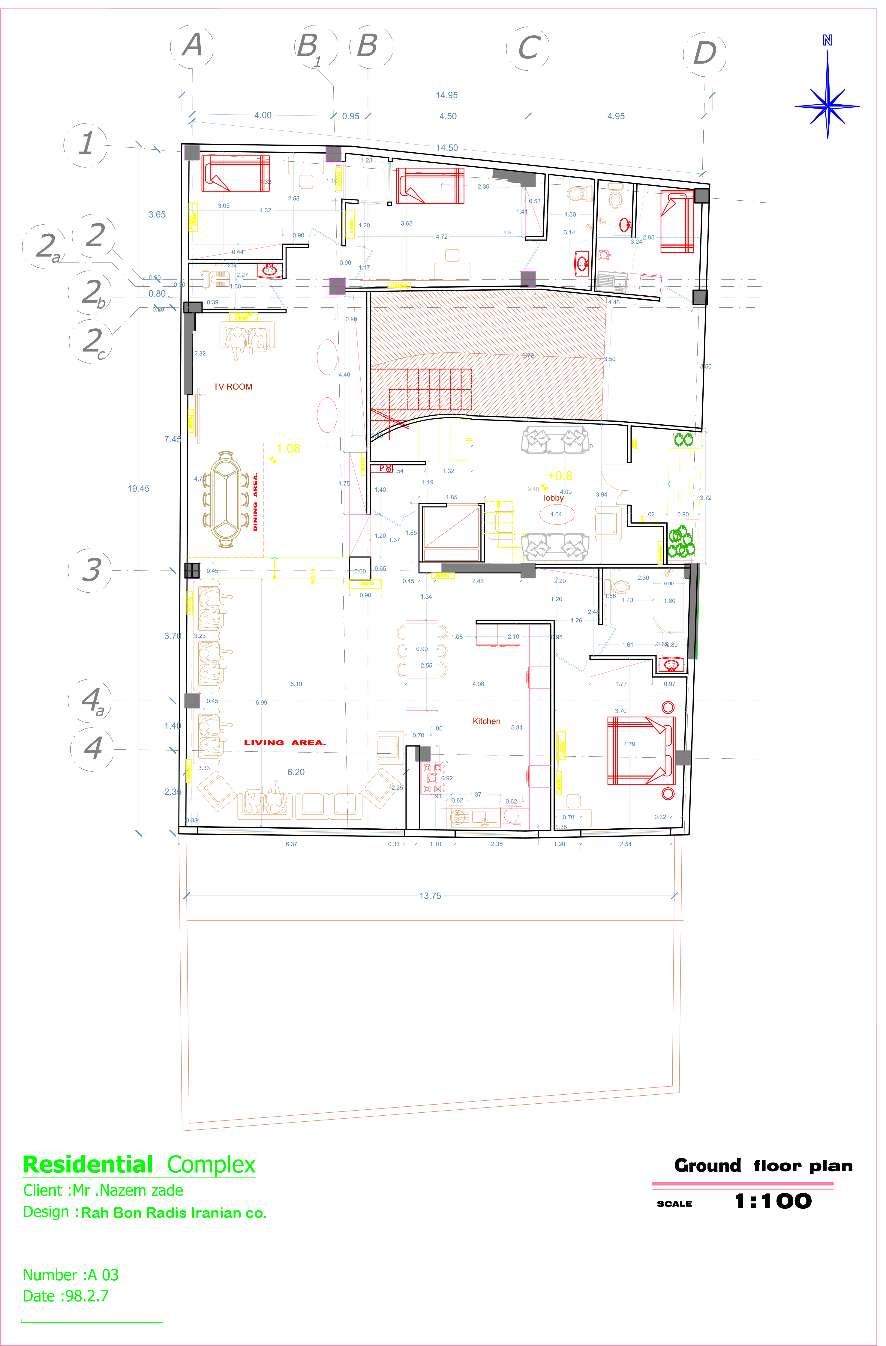 تنشها و تضادهای از شکلها و نیمرخ های پنجره ها شروع شده و میره تا نهایتا به تراسها و کنسول ها ختم بشه. این پروژه شامل شش طبقه با سازه ی بتنی به همراه بام سبز برای تفریح و دورهمی های ساکنین است