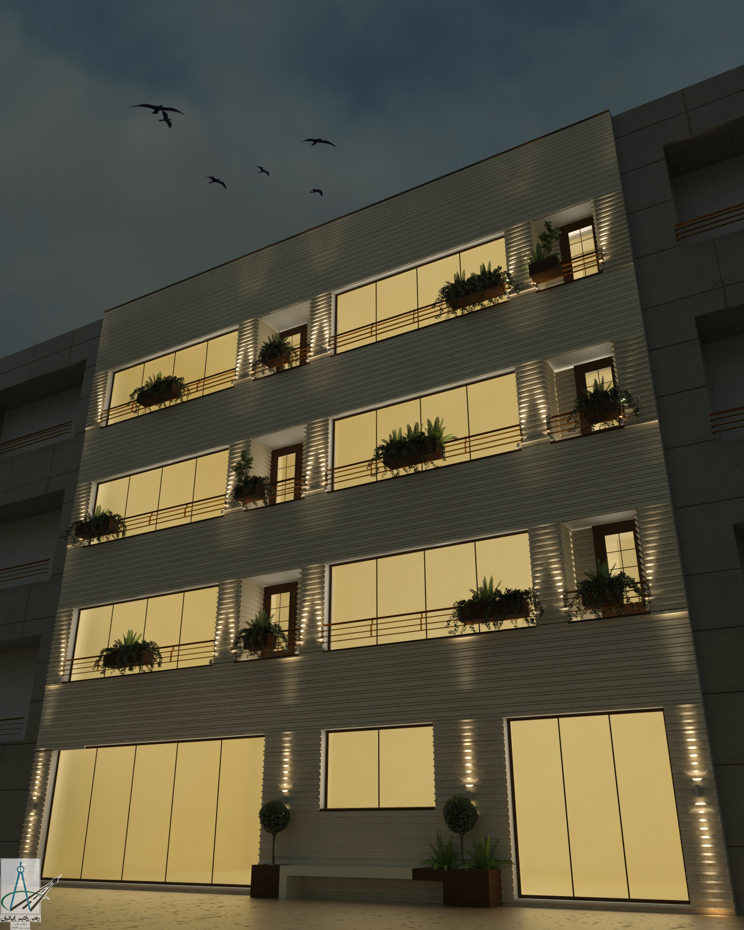 تنشها و تضادهای از شکلها و نیمرخ های پنجره ها شروع شده و میره تا نهایتا به تراسها و کنسول ها ختم بشه. این پروژه شامل شش طبقه با سازه ی بتنی به همراه بام سبز برای تفریح و دورهمی های ساکنین است